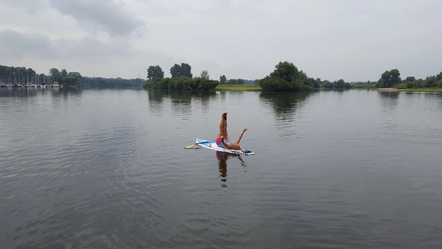 Un domingo por la mañana, tranquilo, sin viento y cálido. La superficie del agua es un espejo. Por suerte hemos salido muy temprano y estamos todavía solos. Ideal para principiantes y para hacer los primeros ejercicios de yoga en la tabla.
