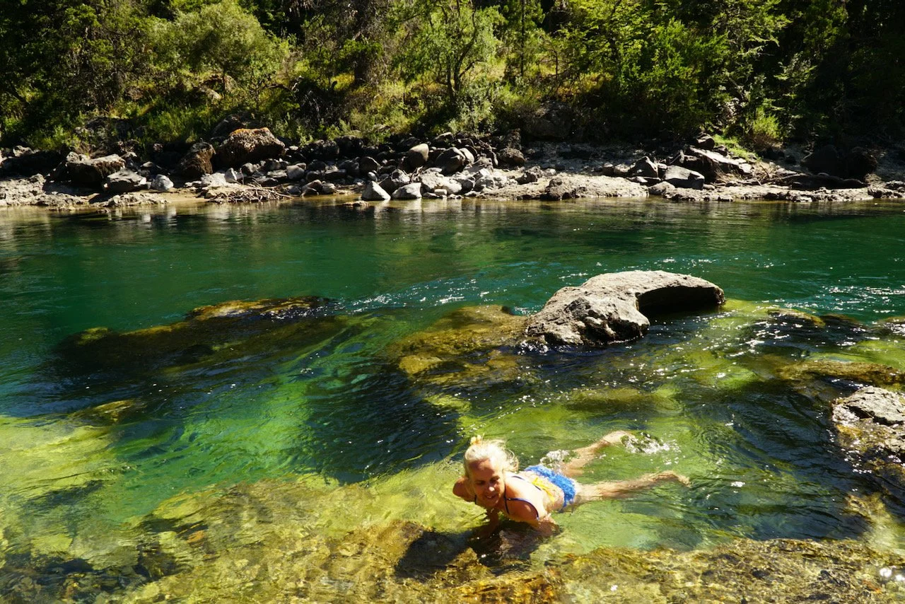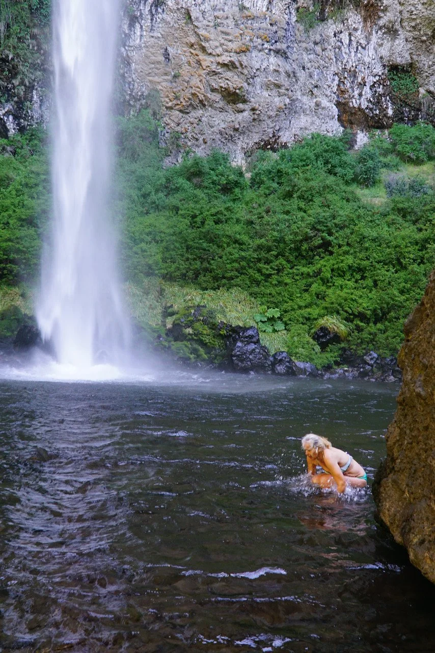 Viele meiner Wanderungen gehen erst einmal an Flüssen und Bächen entlang, manchmal an Wasserfällen vorbei in die Höhe zu Lagunen oder Gletschern. Beim Gehen halte ich Ausschau nach Stellen, in denen man ins Wasser steigen kann, einfach so, nur kurz eintauchen und abkühlen und wieder raus. Bäche bilden kleine Bassins, und da wo die Strömung nicht zu stark ist, gehe ich einfach mit.